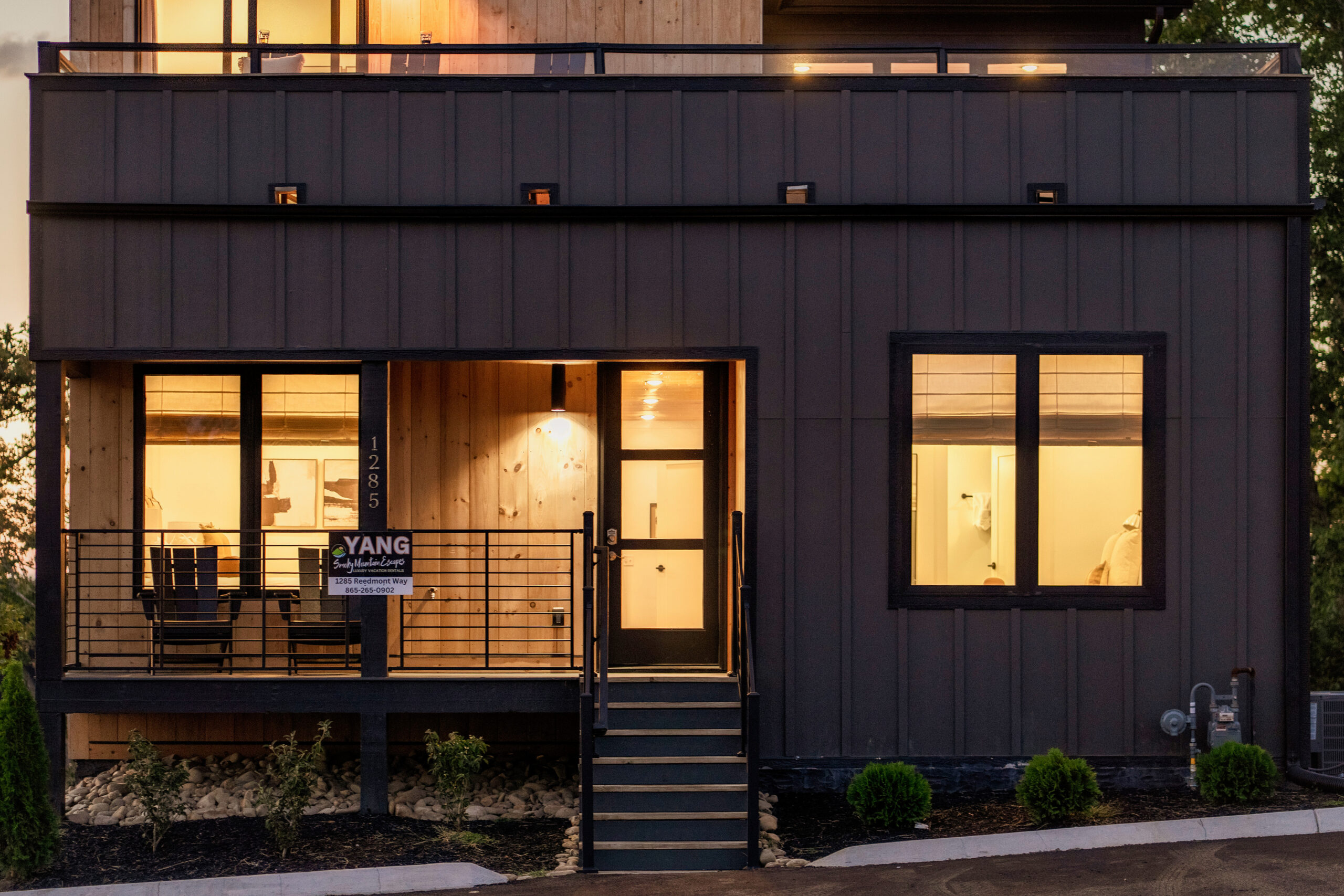 Welcome to the ultimate luxury retreat at Smoky Mountain Yang, with our brand-new, modern rooftop cabin concept. This stunning 5-bedroom cabin offers a contemporary design with plenty of space for family and friends. Featuring four elegant king bedrooms and one fun-filled bedroom with full-size bed and a Queen/Twin Bunk, it’s perfect for groups of up to 13 guests. Located by Soaky Mountain Water Park, Sevierville Convention Center, Sevierville Golf Club, and Wilderness of the Smokies. Parking for 5-6 vehicles.