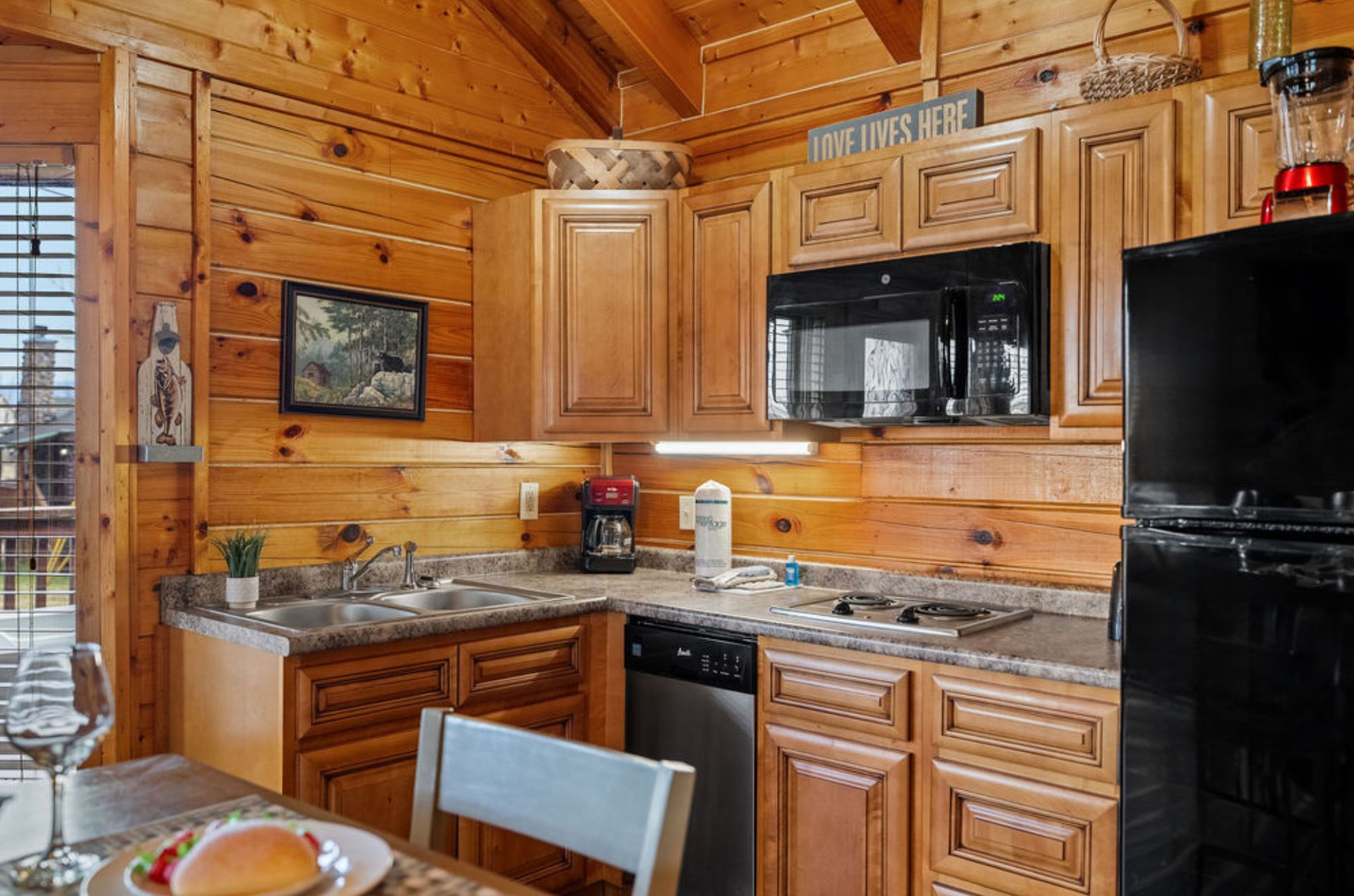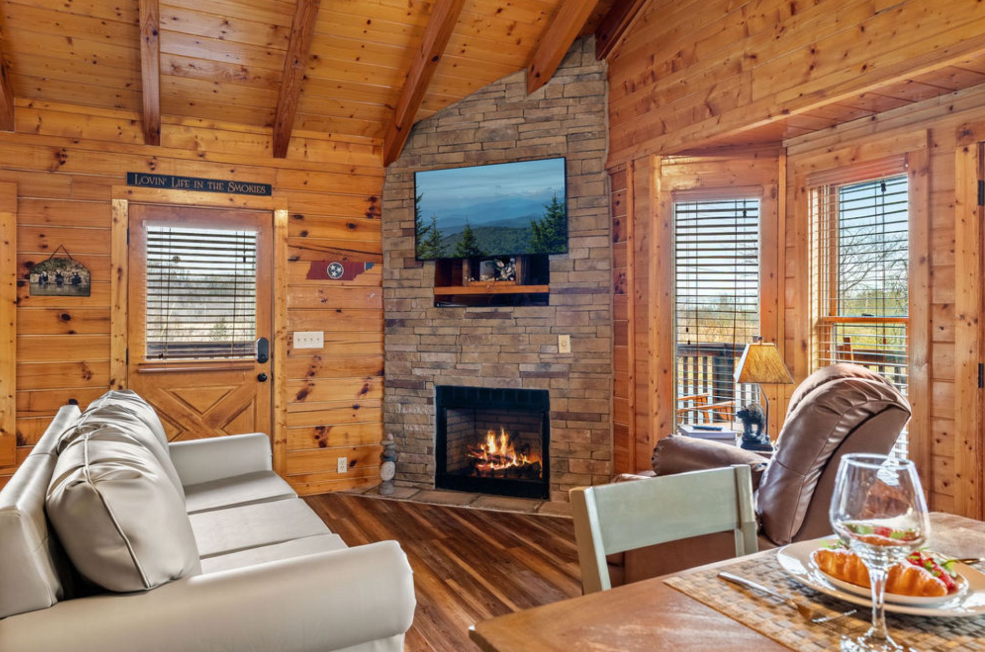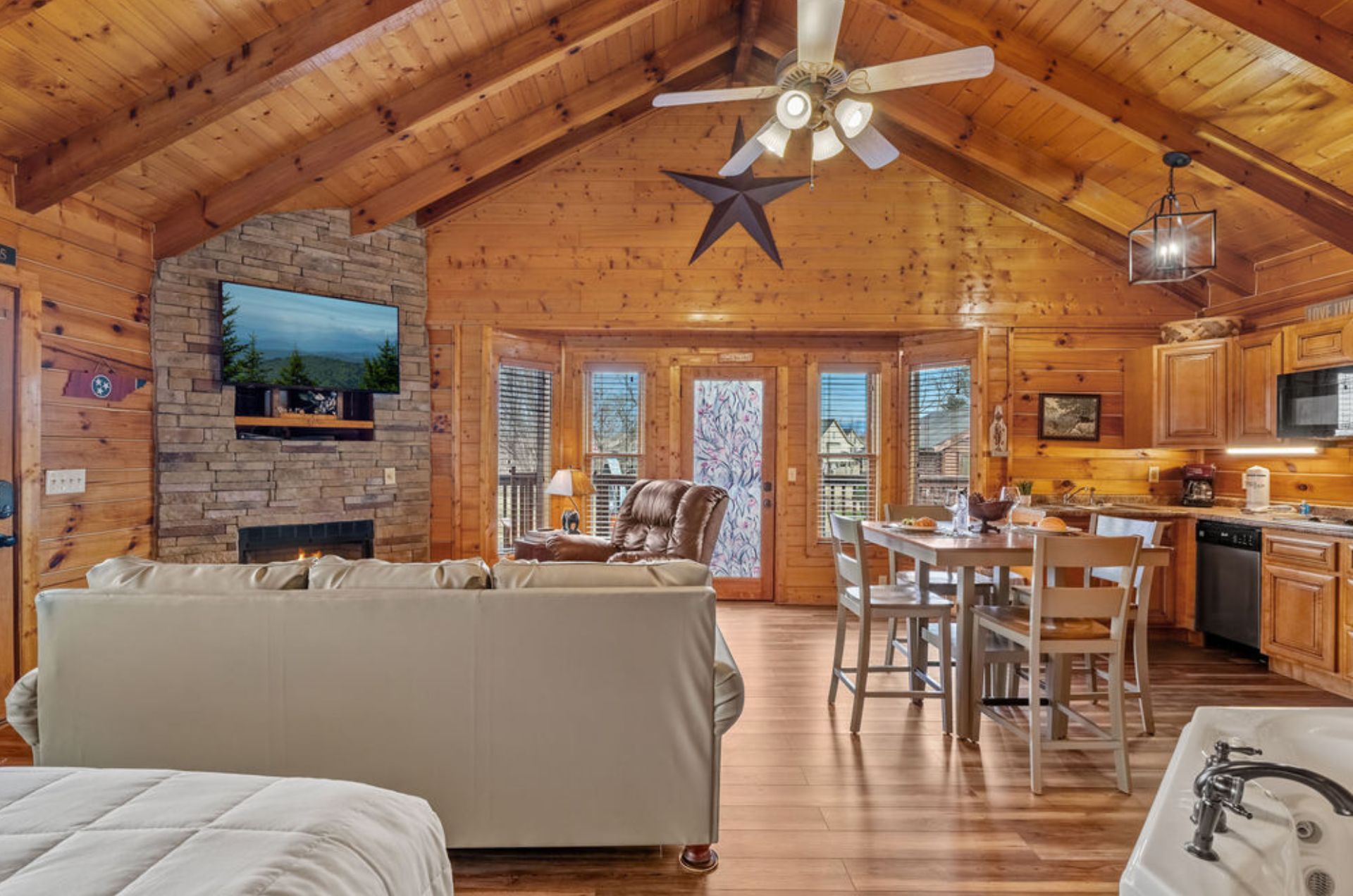 Escape to Little River Cabin, an inviting studio log cabin that blends rustic Smoky Mountain charm with modern comfort, perfectly designed for a romantic retreat or a small family getaway. Located just 1 mile from downtown Pigeon Forge, this cozy cabin is surrounded by mountain scenery and sits across the street from the beautiful river, adding a peaceful backdrop to your stay.