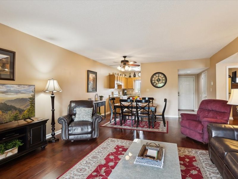 The spacious living room is perfect to place to start your day, and to come back to rest after a day of adventures. The seasonal fireplace is great for those cold winter months. There is also a sleeper sofa. The balcony is located right off the living room, perfect to relax with a cup of coffee or have a family meal. The bedrooms each have a king bed. The master bedroom has a master bath including a jacuzzi tub. The kitchen is full equipped for you to prepare meals. There is also a washer and dryer for your convenience.