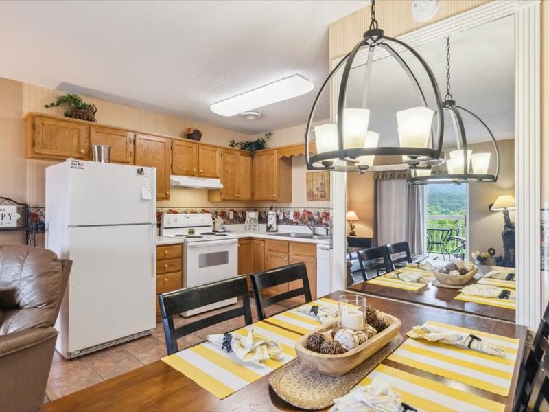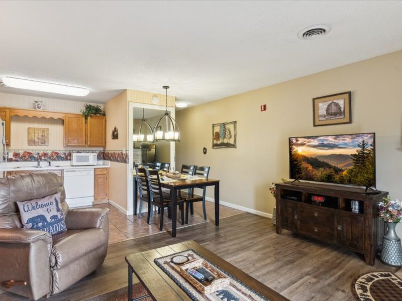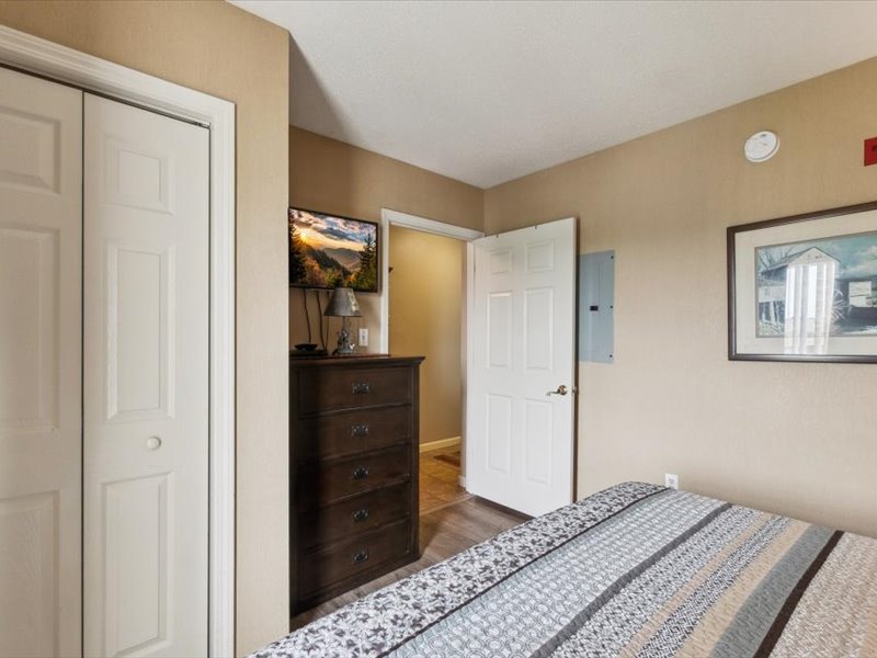 Step into comfort and relaxation in this beautifully appointed condo, starting with a spacious king bedroom that offers plenty of storage for all your belongings, making it ideal for extended stays or quick getaways alike. The attached bathroom features an oversized walk-in shower, providing a spa-like experience to refresh and unwind after a day of exploring Pigeon Forge and the surrounding Smoky Mountains.