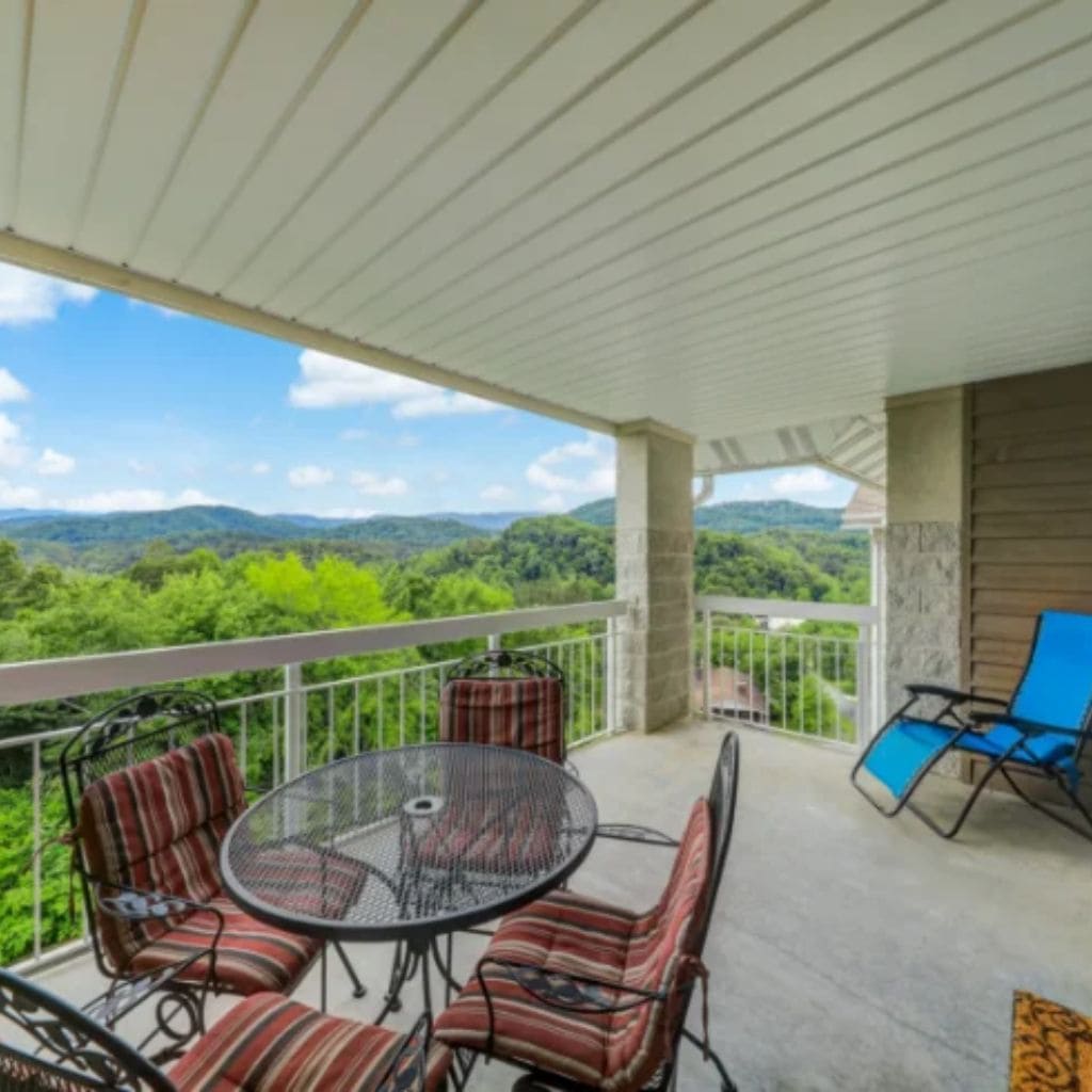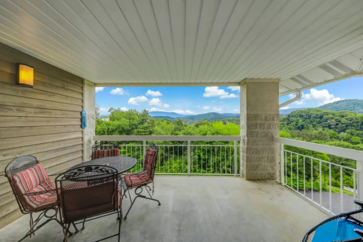 Perched on the fifth floor of the sought-after Whispering Pines Resort, All About the View offers a luxurious and cozy escape with breathtaking mountain vistas. This stylish two-bedroom, two-bathroom condo comfortably accommodates up to four guests and is the perfect Smoky Mountain getaway for couples, families, or friends.