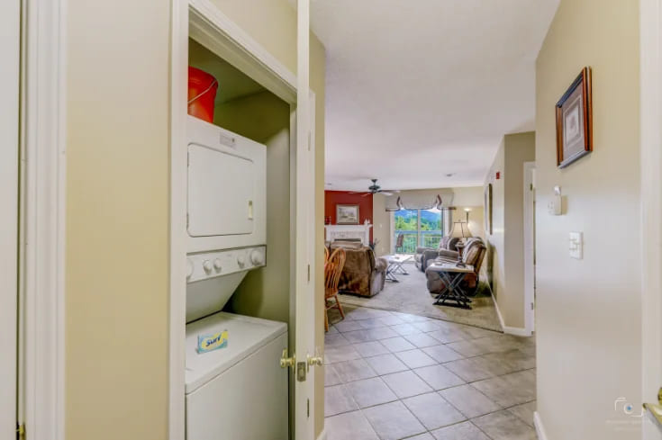 The fully equipped kitchen is a chef’s dream with granite countertops, tile flooring, and all the cookware, appliances, and gadgets you’ll need to whip up anything from hearty breakfasts to gourmet dinners. Prefer outdoor dining? Step outside to the resort’s picnic area and fire up the complimentary grills.
