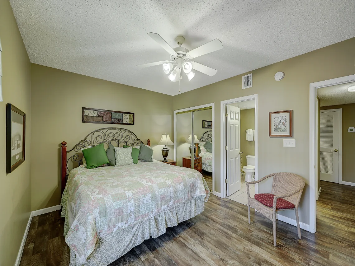 Experience the ultimate in comfort and luxury in the master bedroom, featuring a king-sized bed, a jetted tub, and a private bathroom that guarantees your complete relaxation. The second bedroom also includes a king-sized bed and a private bathroom, equipped with its own jetted tub for your enjoyment. Each of the additional two bedrooms comes with a king-sized bed, and a centrally located third bathroom provides added convenience for all guests. Rest assured, all towels and linens are supplied, and you will find an in-condo washer and dryer at your disposal for maximum convenience.